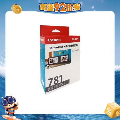 優惠套裝包含CLI-781黑/靛藍/洋紅/黃色墨水盒 + PP-208 高光澤多用途相紙 4R (20 張)