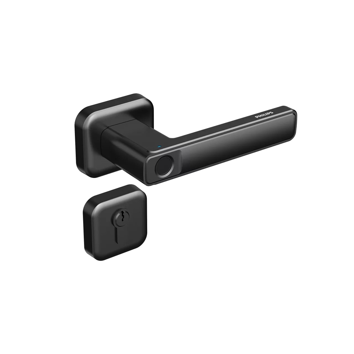 Philips DDL101 1000 series 室內智能門鎖, 享受 DDL101 簡單易用的一觸開鎖體驗!當您握住把手時,拇指就會自然放在感應器上。成功驗證後,按下把手即可開門,簡化開鎖步驟。