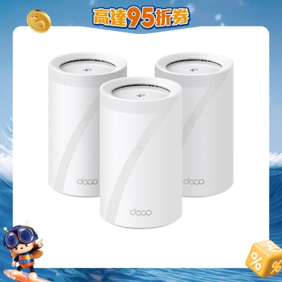 11 Gbps 三頻 WiFi–5760 Mbps(6 GHz)+4320 Mbps(5 GHz)+574 Mbps(2.4 GHz)。2.5 Gbps 有線連接–4個 2.5Gbps端口。無線和有線組合回程—將無線和有線回程與每個單元同時連接,以提高整體輸送量並減少延遲。多鏈路操作(MLO)–同時跨不同頻段和通道發送和接收數據。320 MHz 信道–帶寬加倍。在 6 GHz 頻段上工作–最大限度地減少綠地頻譜的擁堵。TP-Link HomeShield–提供全面的網絡保護。