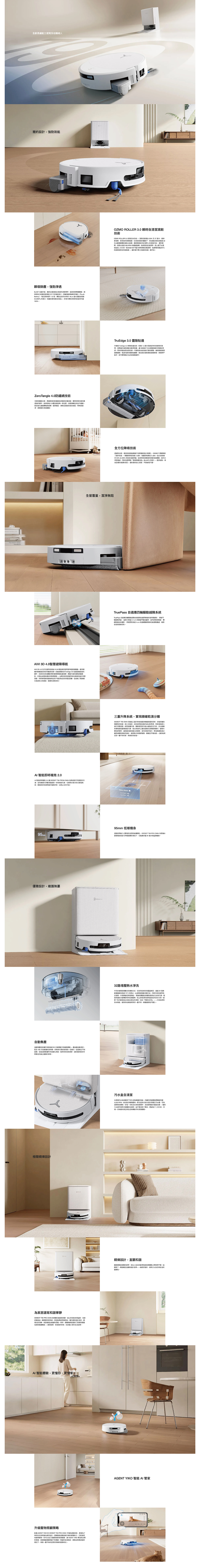 全新長續航力滾筒洗地機械人 / 32路滾筒增壓活水洗地 / 30,000Pa 吸力+16L/S 風量 / TruePass 靈越四驅越障 / 無限續航PowerBoost 瞬時超充技術