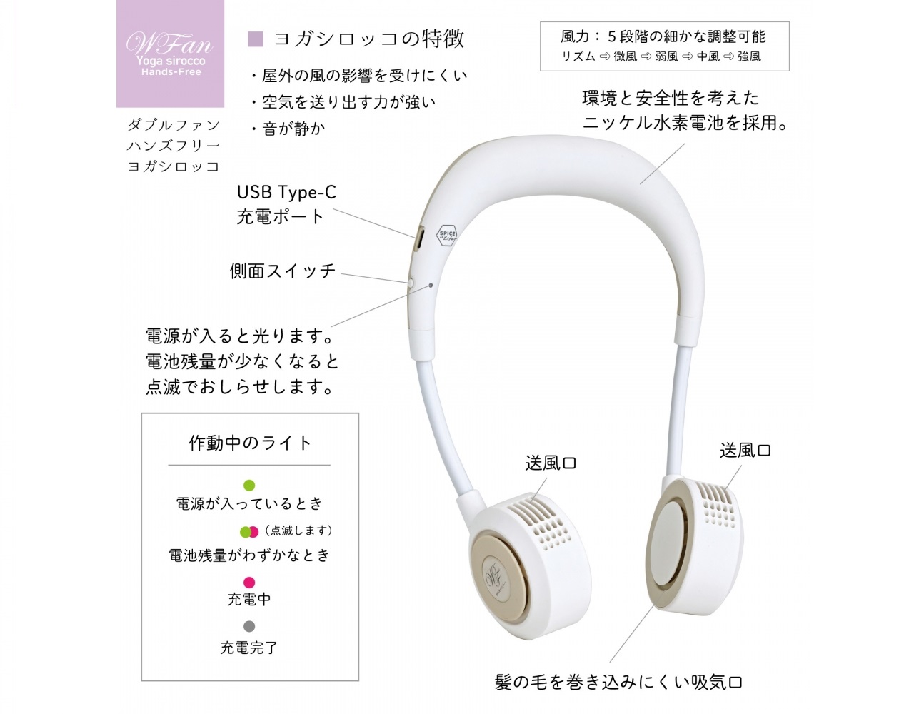 Spice of Life DFYS213 Yoga Sirocco 掛頸無葉免提風扇