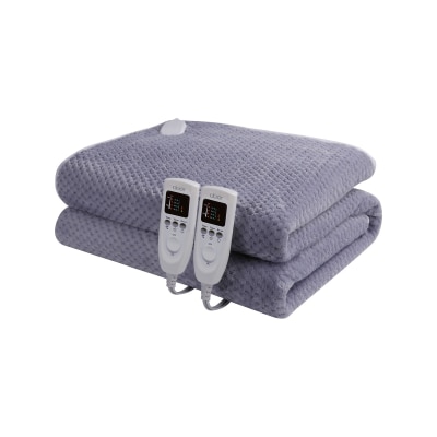 舒適絨(時間掣)電暖氈-雙人/可手洗或機洗,3層結構 : 海港灰色舒適絨及雙層纖維布,呎碼:160x140cm,5段熱力設定及顯示,適合不同需求,電子控制,LED 顯示,過熱安全保護裝置,安全可靠