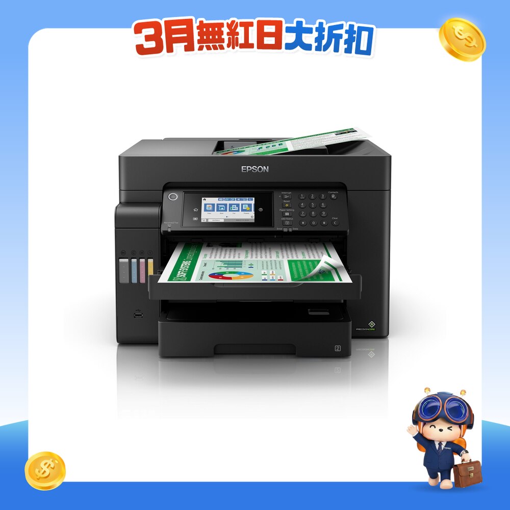 4合1 Wi-Fi® & 以太網:A3+ 打印/複印/掃描/傳真, 墨瓶:顏料性黑色墨水及彩色CMY, 支援雙面A3 打印及掃描, ISO打印速度:黑色:25 ISO ppm;顏色:12 ISO ppm