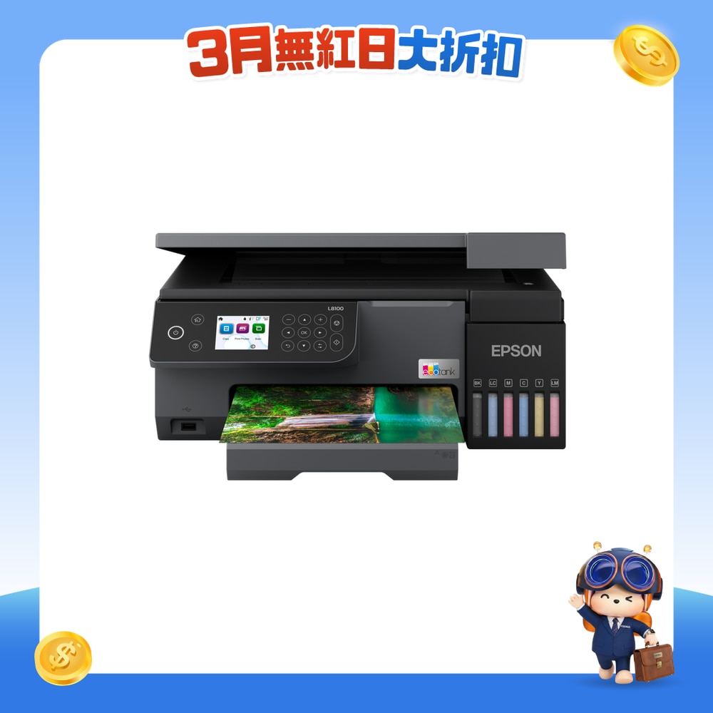 通過L8100 6色供墨系統的3合1照片打印機,以極低的成本呈現出鮮明的無邊打印和無與倫比的性能。