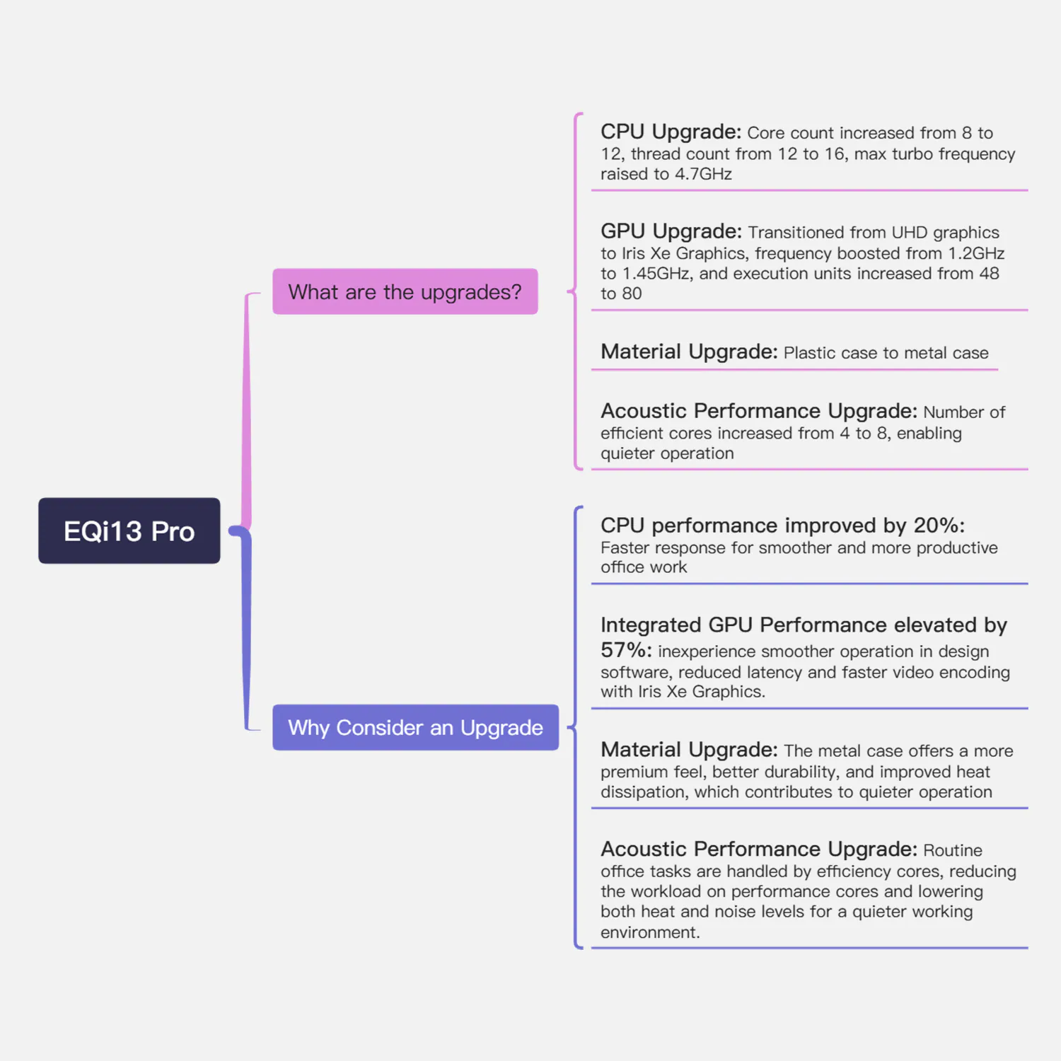 Beelink EQi13 Pro 搭載第13代 Intel® Core™ 處理器,32GB 雙通道記憶體,支援雙 M.2 PCIe 4.0 SSD,雙千兆網口、WiFi 6、藍牙 5.2,內建 85W 電源,靜音散熱,效能與整潔兼備。