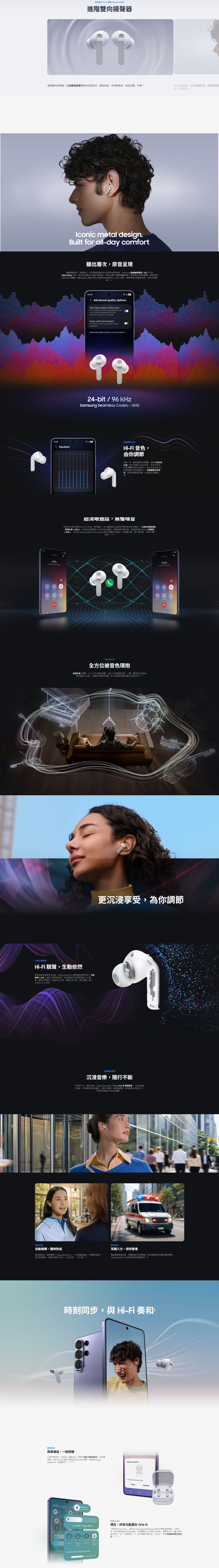 無縫連接: 自動切換 (Samsung 生態系統: 智能手機/電腦/平板/電視) 極致音質: 雙向揚聲器超廣闊低音單元帶來更細緻的聆聽體驗 智能AI體驗, 實時適應式降噪