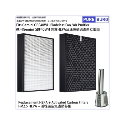 一組2件 H13 級別適用 Gemini GBF40WH 無葉HEPA及活性碳過濾直立風扇/空氣清新機活性碳&HEPA替換用濾網濾芯組合