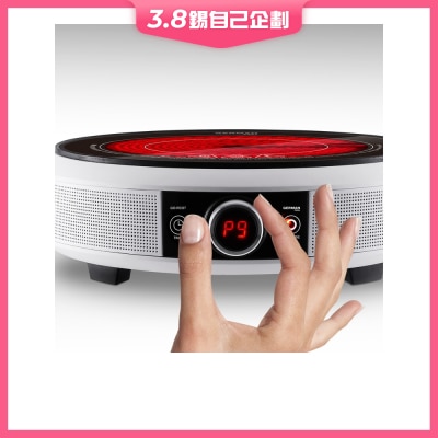 最高火力達2,200W,適合各種物料鍋具 *,共13段火力調校,慢燉爆炒冇難度,內外雙環靈活加熱,旋鈕及輕觸式按鈕,操作簡易,圓形慳位設計,入得廚房出得廳堂,獨立13A插頭,一插即煮