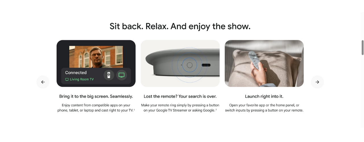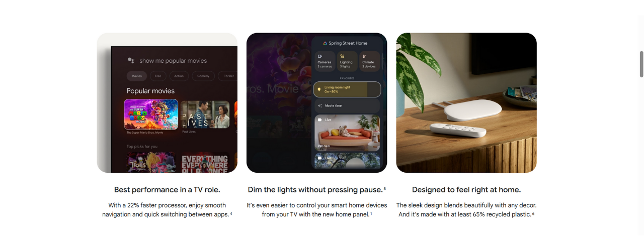 Google TV 4K 串流器(Hazel 色)讓你把所有喜愛的娛樂集中於一地。支援 4K HDR、Dolby Vision 及 Dolby Atmos,提供細緻畫質與震撼音效。內建 Google TV 介面,可輕鬆使用 Netflix、YouTube、Disney+、Prime Video 等熱門平台。搭載 Google 助理,只需語音即可搜尋內容、控制電視,甚至操作智慧家居。Hazel 深綠灰配色設計小巧時尚,完美融入各種客廳擺設。