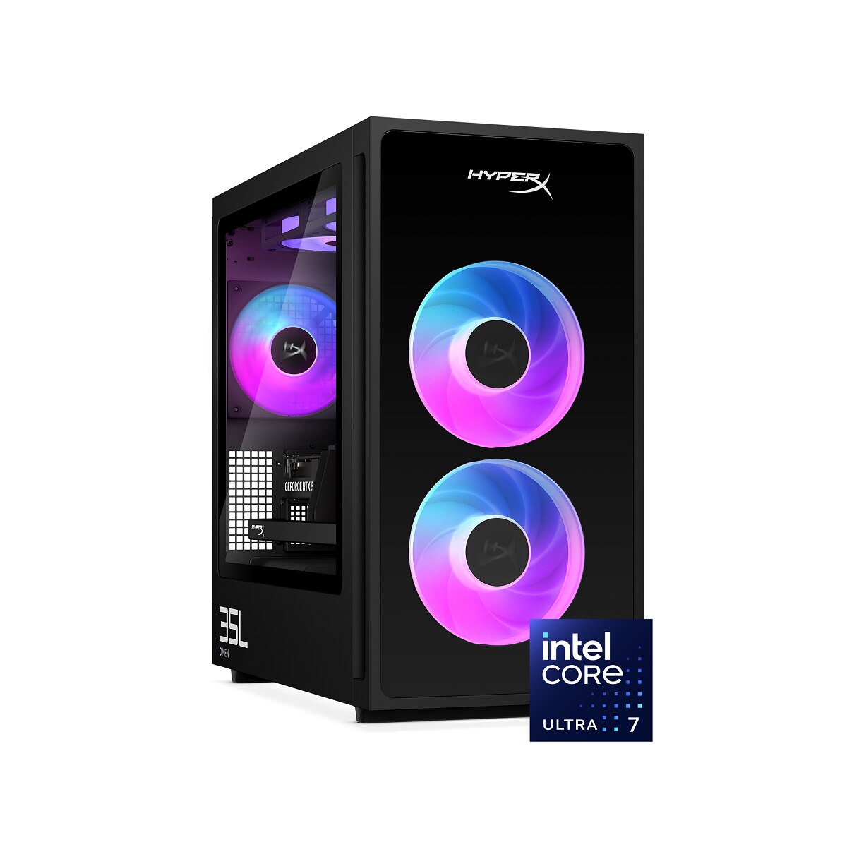 HP HyperX OMEN 35L GT18旗艦級電競桌面電腦機箱配備鋼化玻璃面板,無需工具即可輕鬆升級,並配備多個aRGB亮燈區。型格設計加上強勁效能,配合包括機箱風扇、水冷系統和電源供應器在內的 OMEN 組件,再搭配OMEN Gaming Hub一站式遊戲控制台,完美掌握每一刻的遊戲體驗。
