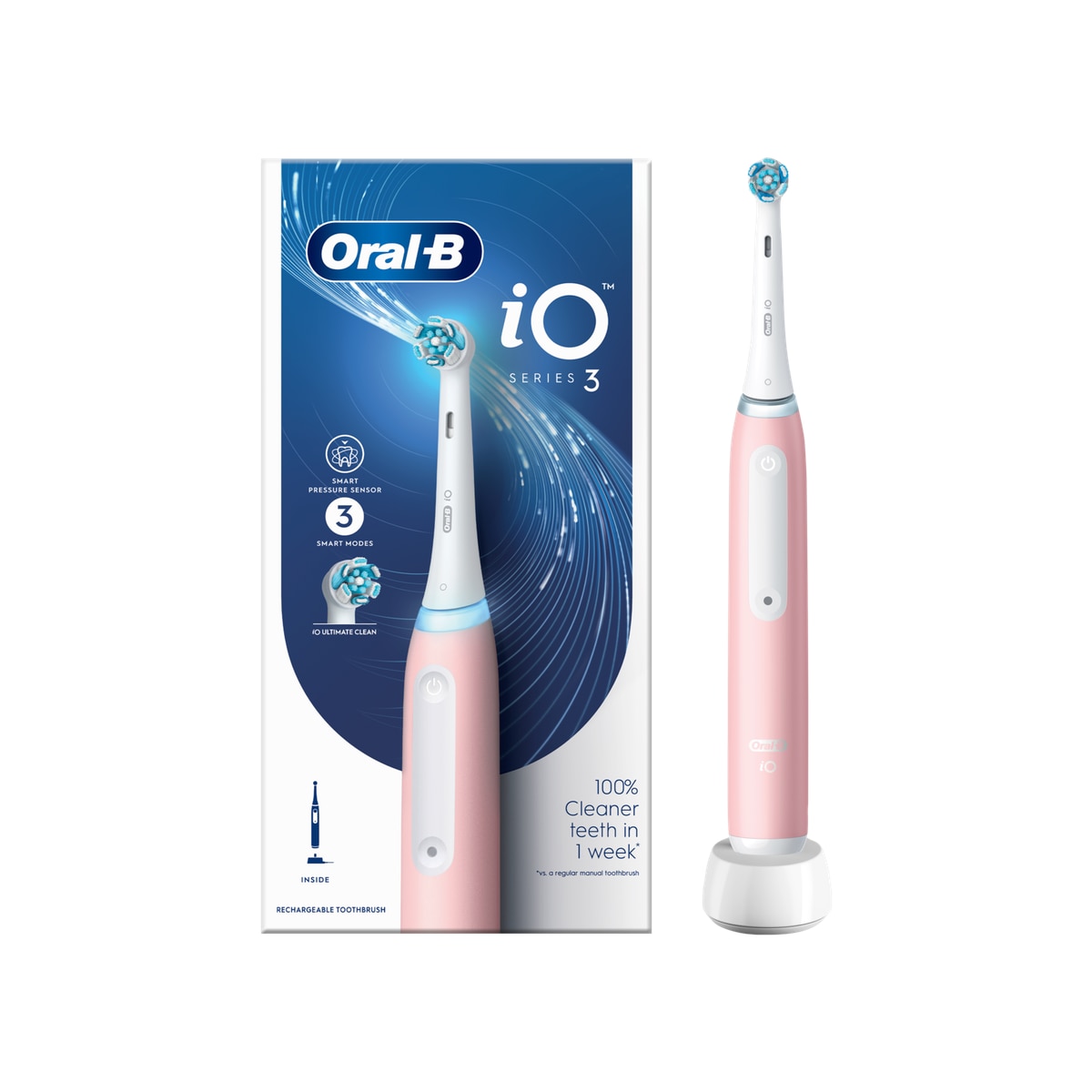 Oral-B iO3具備了強勁而柔和的微震技術,磁力驅動系統可集中平穩地將能量無消耗傳送至每根刷毛的尖端,並結合了Oral-B以牙醫工具為靈感啟發的圓形刷頭獨特設計,讓您每天享受如專業洗牙般的潔淨感受。智慧型壓力感應器可有助於防止刷牙力度過當,保護牙齦和琺瑯質。請每3個月更換Oral-B iO智能系列的可替換式電動牙刷刷頭,以達到最有效的清潔效果。