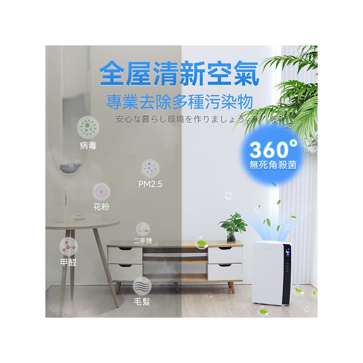1.超強大風吸力,強效除臭、吸毛、去皮屑,擁有寵物家庭的好幫手;2.四層漸進式濾網,去除空氣中99.97%小至0.3微米的顆粒物;3.醫療級UV紫外燈+光觸媒,4D除菌不留痕。內置負離子發生器,清新環境空氣;4.三擋調速,支持手動或自動模式根據空氣質量自動調節風力;5.360°過濾循環淨化大風量遍佈空間,數字化PM2.5,實時顯示空氣質量;6.貼心睡眠模式,自動息屏,運作相當於呼吸聲。濾網拆裝方便,易於清潔;7.更多智能化設定,可設置定時關機,濾芯壽命到期更換提醒;