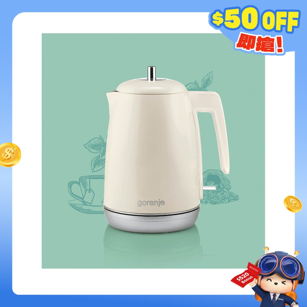 Retro系列, 1.7公升容量, 360度旋轉底盤方便使用, 水滾自動關閉功能, 防煲乾水斷路設計, 操作指示燈