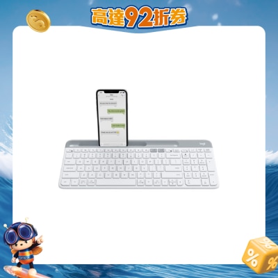 利用 K580 Slim 多工鍵盤,讓任何空間都變得現代化 – 這是一款超纖薄、前瞻設計的鍵盤,完美適合於在電腦前輸入您的想法,然後切換到智慧型手機撰寫文字。