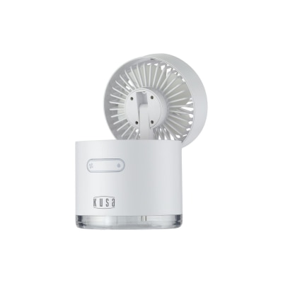 Kusa KS-CF50 加濕冷風扇,加濕, 冷風一take過。夏天提供冰涼冷風, 不用開冷氣也能透心涼。內置3000mAh鋰電, 3檔風速可選, 一檔風可用8小時。 機身輕巧, 可便攜外帶戶外或旅行使用。另Kusa冷風扇採用可折疊式設計,使用時可以手動拉起。不使用時可將風扇降下,不佔空間。