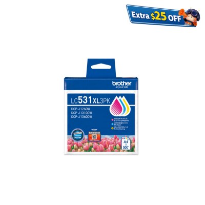 高容量彩色墨盒打印量約 500頁 - 3個裝 (根據 Brother採用ISO/IEC 24712測試計算)