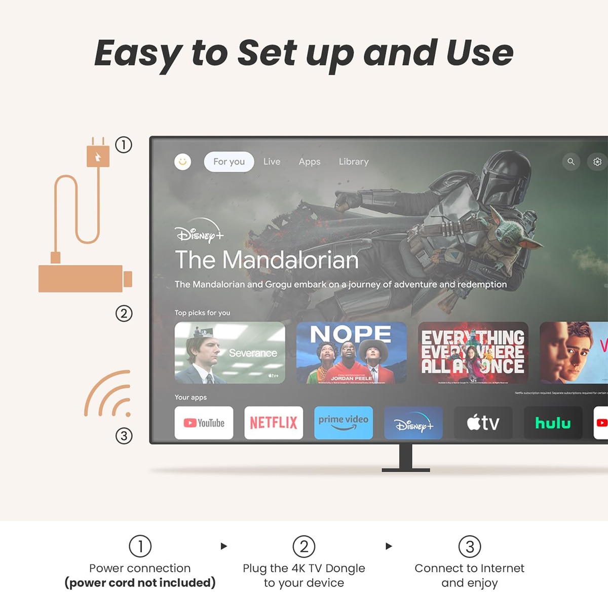 Yaber LEAP-S2 4K Google TV 轉接器,包含U型HDMI轉插頭。支援視訊編解碼器:AV1、VP9、H.264、H.265 (HEVC)、HDR10、HDR10+、杜比音效。遙控器按下按鈕即可觀看Netfix、Disney+、YouTube等等。內建 Chromecast、Amlogic S905Y4、四核心 2.0 GHz (ARM Cortex-A35)。