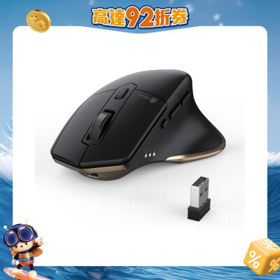 人體工學靜音無線鼠標,藍牙+2.4GHz無線連接,500mAh可充電電池,USB-C充電,5個可調DPI級別(800 / 1200 / 1600 / 2000 / 2400),適合Win/Mac使用。