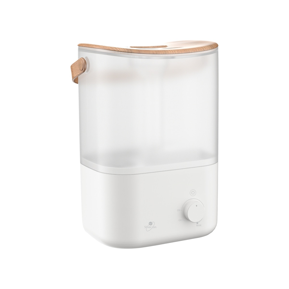 A)採用先進 Ag+ 銀離子技術,可消滅99.99%及抑制水內的細菌、黴菌 B)配有變色氛圍燈 C)25W,AC100-240V,環球適用 D)2.8 公升,可拆卸水箱 E)加濕量:每小時約300 毫升 F)旋鈕式霧量調節 G)配備香薰功能