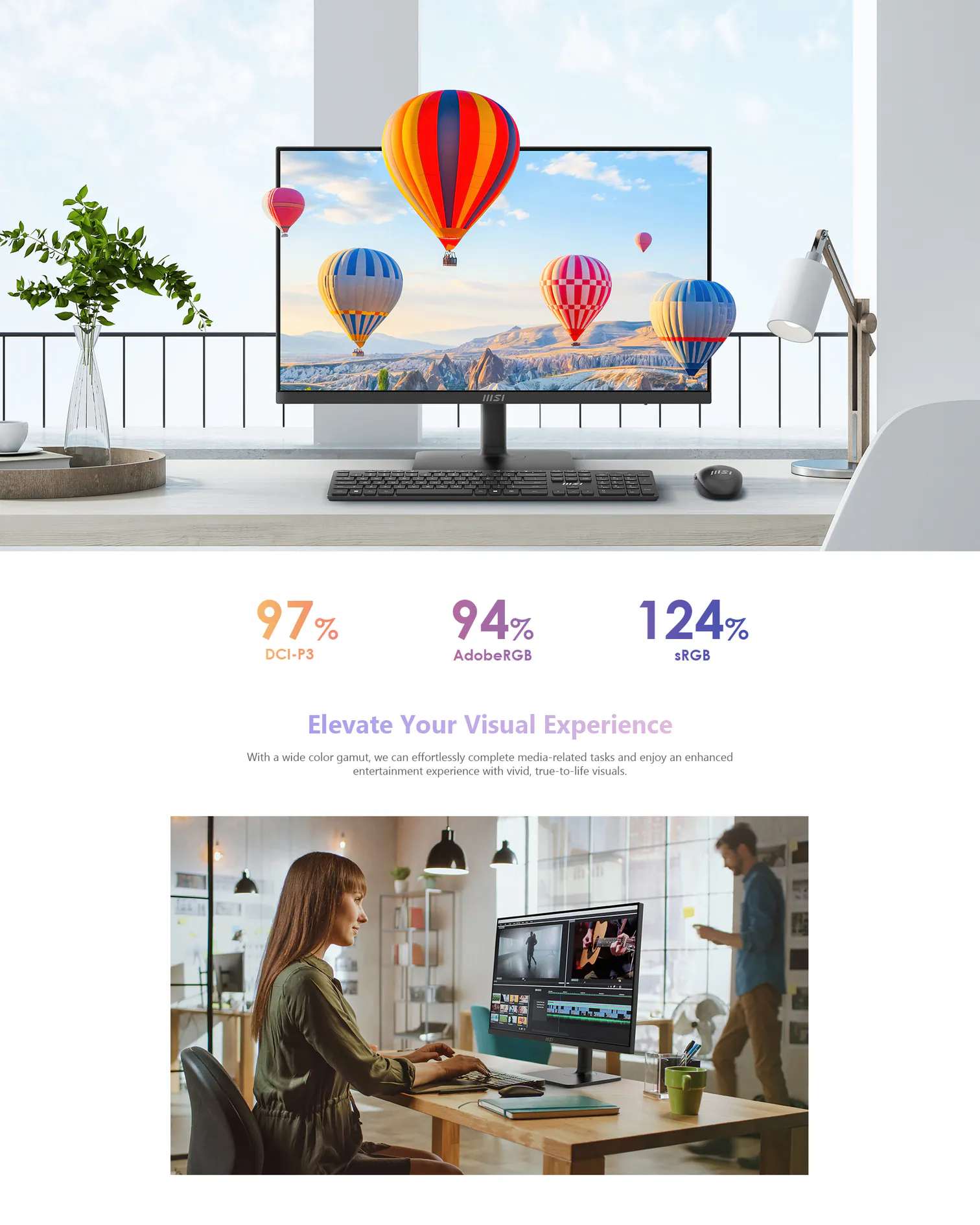 4K UHD/60Hz Refresh Rate/Built-in speaker/Type-C (DP Alt.) w/ 98W PD/DisplayHDR 400/EPEAT certified/Less blue light and anti-flicker technology/DCI-P3 97% , Adobe RGB 94% , sRGB 124%