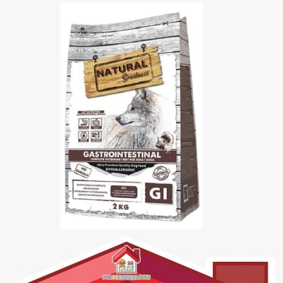Natural Greatness GASTROINTESTINAL 是一款全效、無穀物、低過敏性配方,適用於所有患有腸道吸收障礙的品種成年犬。此款犬糧的特點是添加 MOS 益生元,以改善營養吸收,同時由於其較高的鈉和鉀含量,具有較高的消化率,並含有高生物價值的動物性蛋白質。