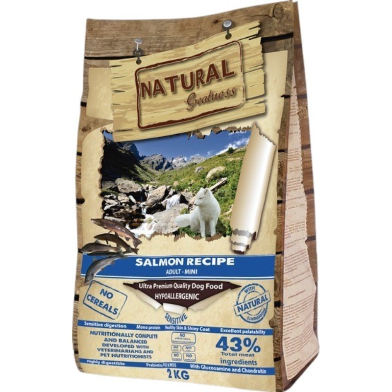 Natural Greatness三文魚配方迷你裝是一款卓越的超優質低致敏性單蛋白配方,不含穀物,專為存在皮膚或毛髮問題的中小型成年犬設計。本配方富含 Omega 3 和 Omega 6 脂肪酸,可促進免疫系統正常運作並改善腸道蠕動。所有精選成分均具有低致敏性和高品質,是雞肉或其他肉類過敏犬的理想選擇。我們所有產品均採用先進的天然烹飪工藝,直接注入新鮮肉類製成。