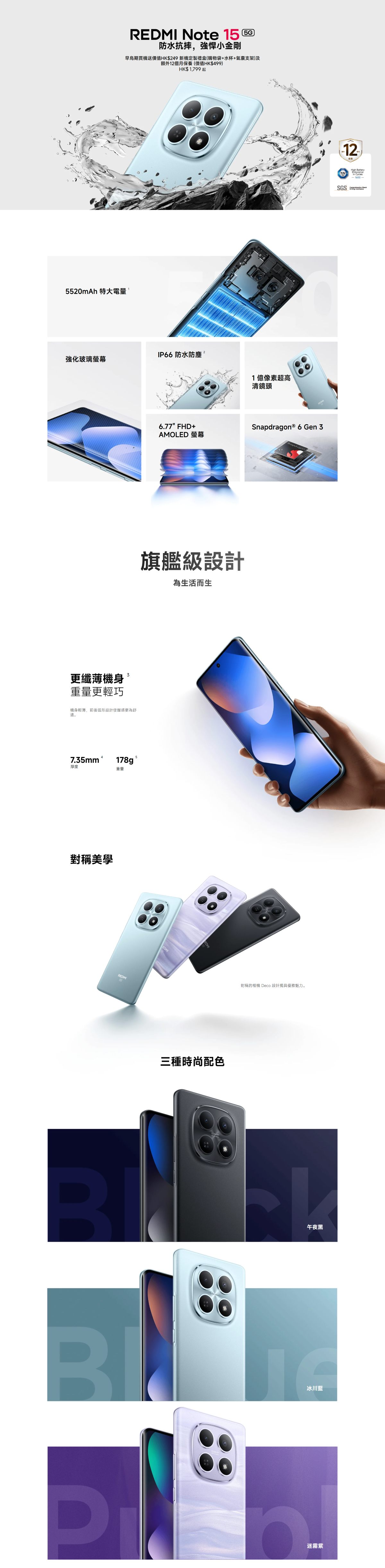 5520mAh 特大電量 強化玻璃螢幕 IP66 防水防塵1 億像素超高清鏡頭 6.77" FHD+ AMOLED 螢幕 Snapdragon® 6 Gen 3