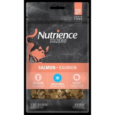 成分 鮭魚 營養成分分析 粗蛋白質含量最低 65.0% 粗脂肪含量最低 20.0% 粗纖維含量最高 1.0% 水分含量最高 5.0% 卡路里含量(計算值):1 千卡/顆(代謝能)。 餵食指南 Nutrience Subzero 零食僅供間歇性或補充餵食。