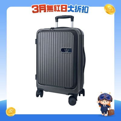 日本Hinomoto 靜音360度雙滾輪,堅固順滑,壽命更長;收納容量可隨時擴大;配備美國海關TSA密碼鎖;使用輕巧耐用的100%PC面料;雙層防盜拉鏈