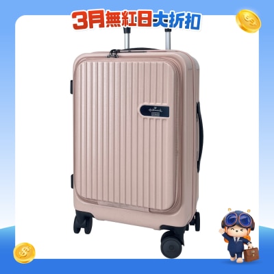 日本Hinomoto 靜音360度雙滾輪,堅固順滑,壽命更長;收納容量可隨時擴大;配備美國海關TSA密碼鎖;使用輕巧耐用的100%PC面料;雙層防盜拉鏈