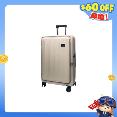 雙模式打開(前揭式+中開)。美國海關TSA密碼鎖。100%PC面料。雙層防盜拉鏈、日本Hinomoto 靜音360度旋轉轆、擴大容量。