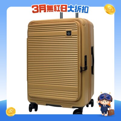 前開蓋4防撞包角+ 避震Roller滑板輪 · 避震Roller滑板輪 · TSA海關密碼鎖 · 100%PC物料 · 雙層防盜拉鏈 · 可擴大5cm