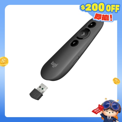 利用 R500s 雷射簡報遙控器,提供具衝擊力的簡報。最遠可在距離 20 公尺處自由移動並瀏覽投影片,並利用紅光雷射筆精確指出焦點區域。R500s 經過最佳化,可搭配 Windows®、macOS 與領先的簡報軟體使用。