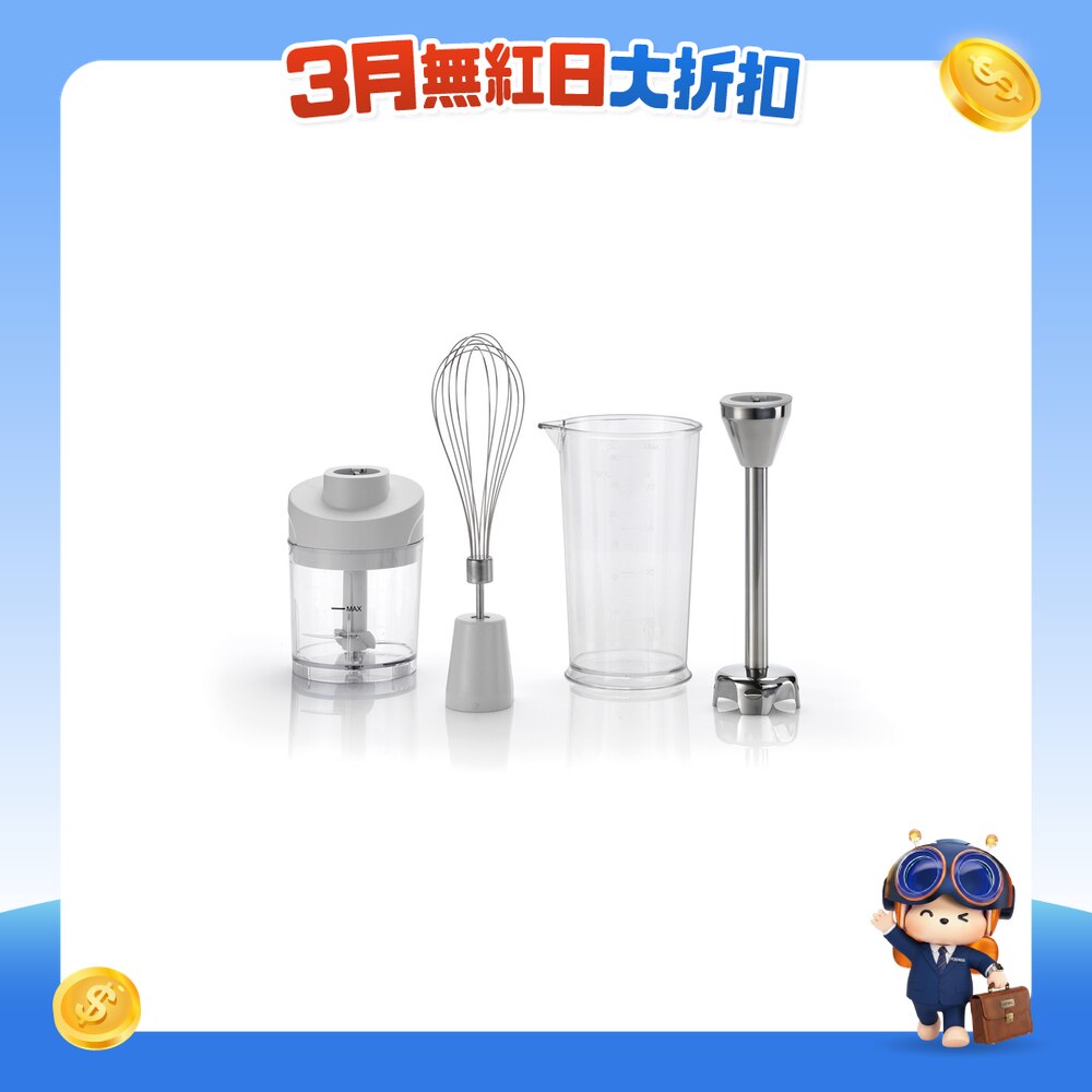 這款功能強大的輕巧型手提式攪拌機可為你的煮食過程提供極度便利的體驗。適用於混合湯、醬汁、冰沙、雞尾酒、生奶油、麵糊及蛋白霜。只需簡單地安裝一個迷你切碎器碗,即可加快日常煮食程序。