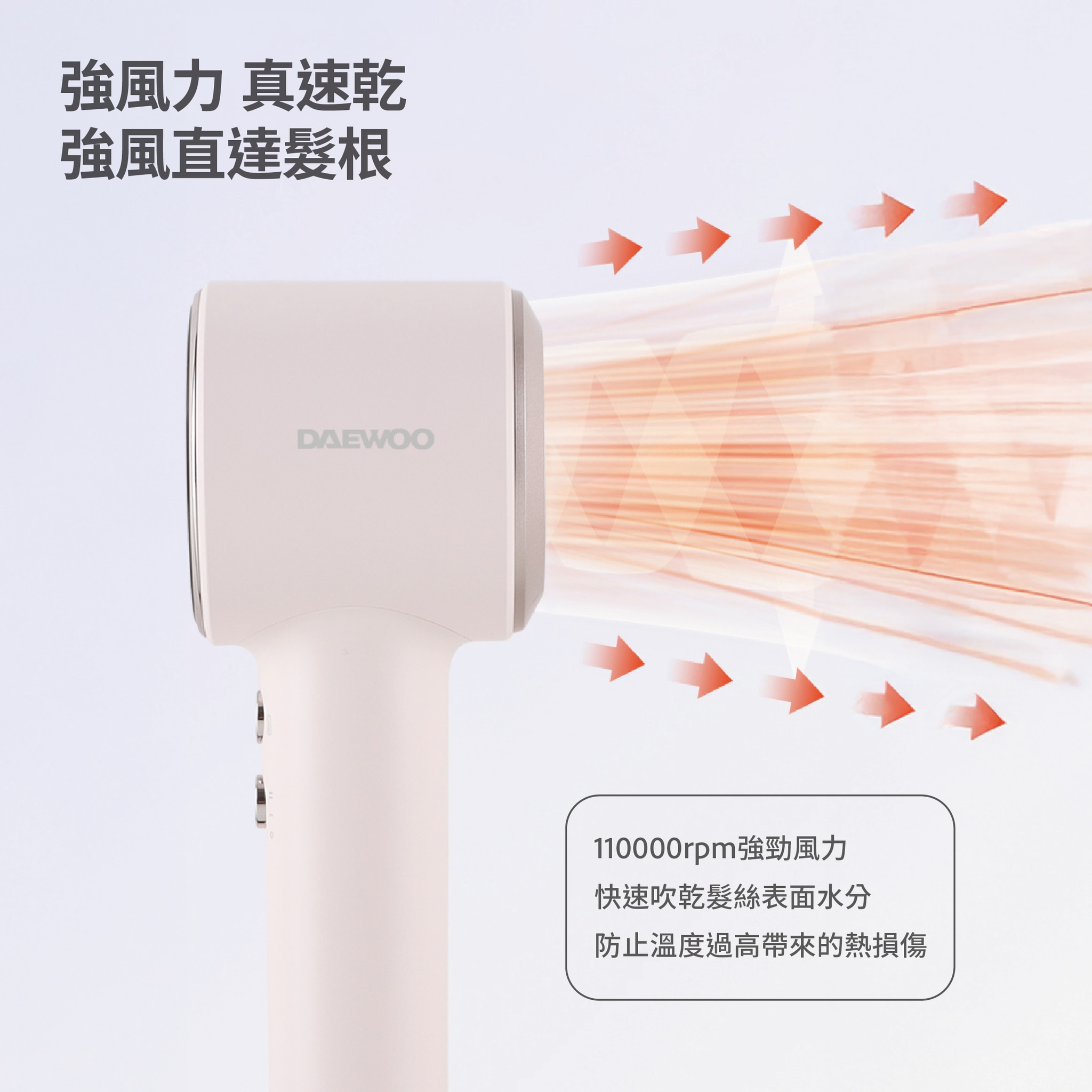 韓國大宇最新推出的S3等離子高速風筒,高濃度等離子高達約50億,全面消除頭髮靜電及毛躁,形成水膜護髪,智能握感啓停功能,握感啓動,放低自動停機,助您安心造型。創新LCD智能觸控顯屏設計,共七種炫彩模式: 恆溫、智能、兒童、長髮、短髮、寵物、冷熱交替等七種模式,更備有3種風溫+2檔風速調節,110000rpm帶來強勁風力,加上NTC智能溫控技術及AI智能測距功能,同時速乾護髮,是市埸上最全面的等離子風筒。