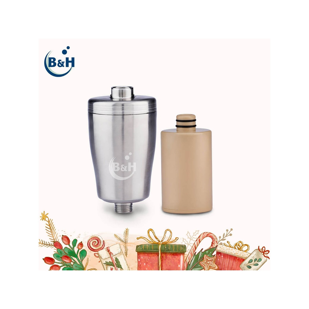 不銹鋼機身,安全耐用, 8重過濾淨化水質去除水中重金屬、沙泥、鐵銹及微細雜質,過濾氯氣及有機化學物, 納米銀有效殺滅細菌, 天然維他命C + 膠原蛋白能減淡黑班、抗氧化、美白、促進膠原蛋白產生
