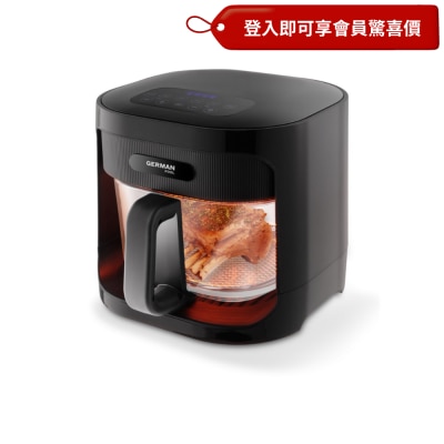 全透明玻璃鍋,烹調過程一目了然,無需額外落油,炮製低脂健康香脆炸物,無油炸、烘焙、燒烤,一鍵炮製百變美食,革命性速炸技術,烹調極快且無火無輻射,4.2公升容量,小至堅果大至原隻雞皆可,玻璃鍋可使用洗碗碟機,清潔簡單方便,方形慳位設計,小廚房好幫手