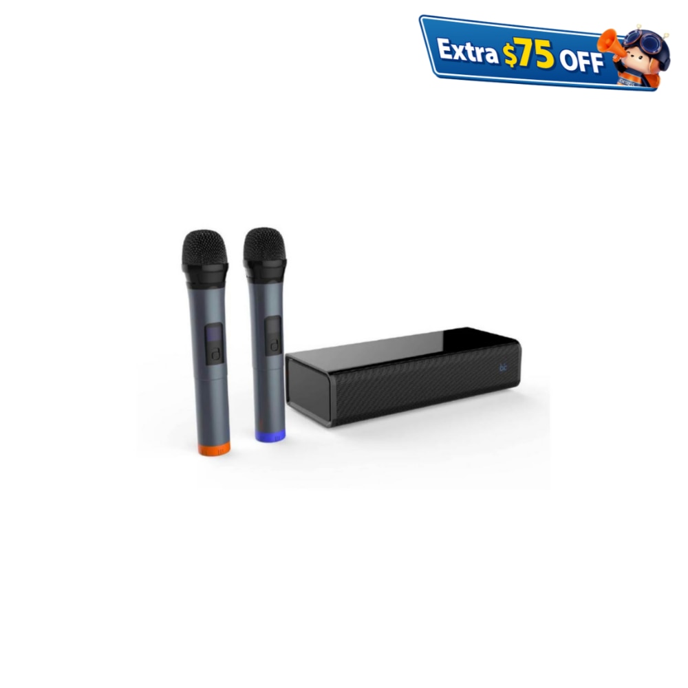 便攜式2.0無線卡啦 OK SoundBar,配備無線麥克風x2,內置4000mAH充電電池,20W RMS(最大100W),支援藍牙5.0/A2DP/ACRCP,可從任何智能手機、智能電視或平板電腦支持藍牙設備傳輸出。