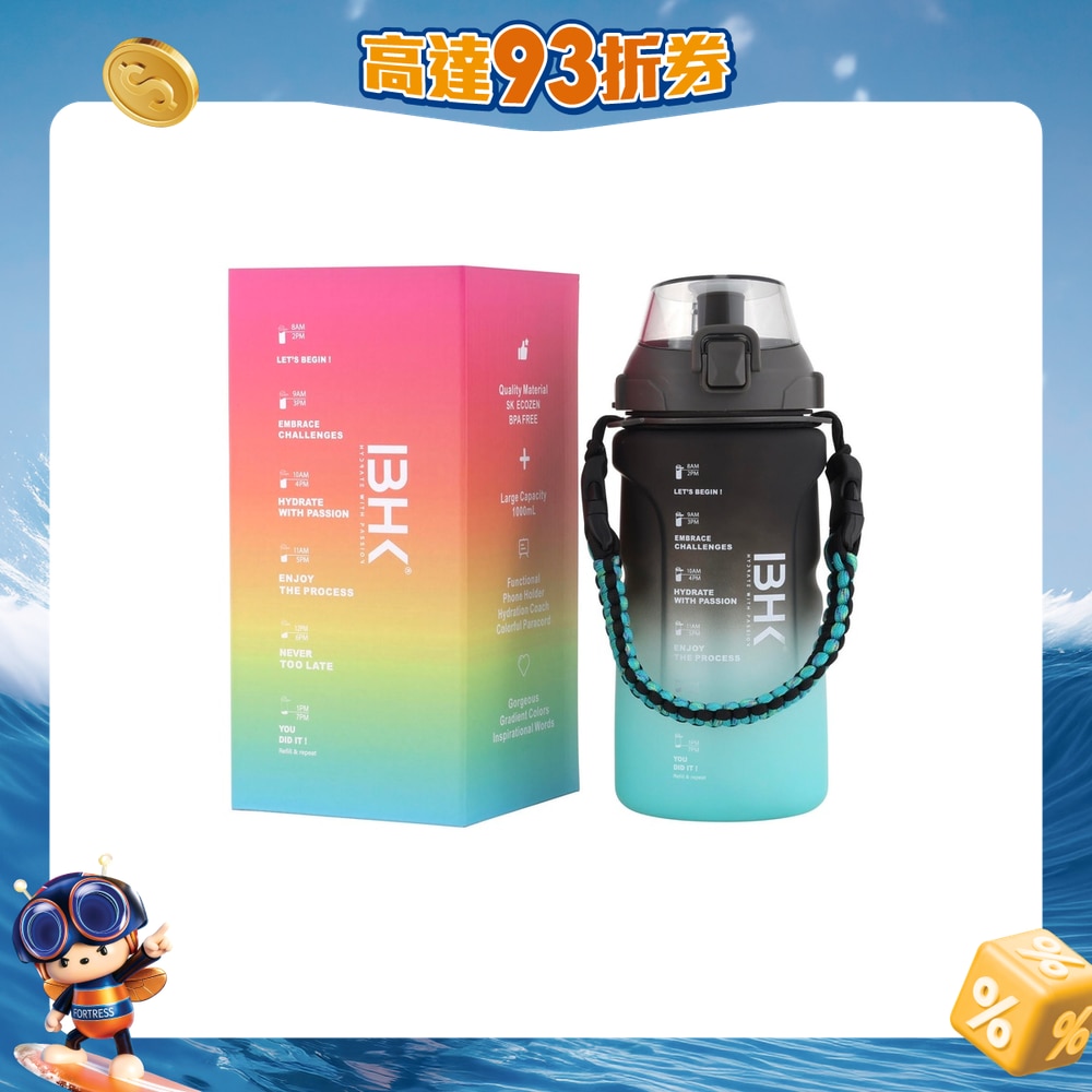Inspiration Bottle Hong Kong (IBHK)香港首間勵志水樽專門店- 靚靚漸變色水樽;1L大容量,辦公室、在家、外岀和運動一樣適合;IB樽以「勵志字句」、「飲水時間表」和「一日八杯水」為設計主題,鼓勵您多喝水!IB樽特別配有極具手感的傘繩,方便攜帶,亦可解開繩扣,掛在手袋和背包。水樽物料不含BPA,內外質素兼備!
