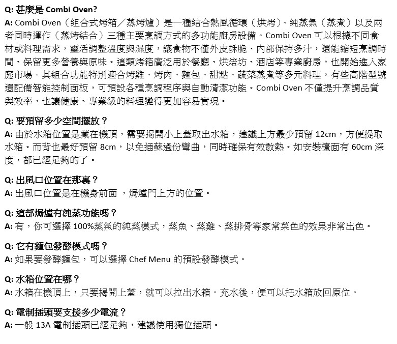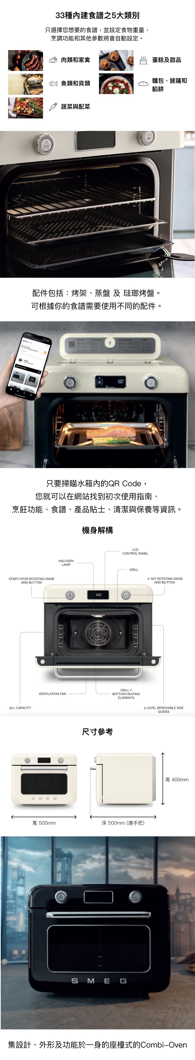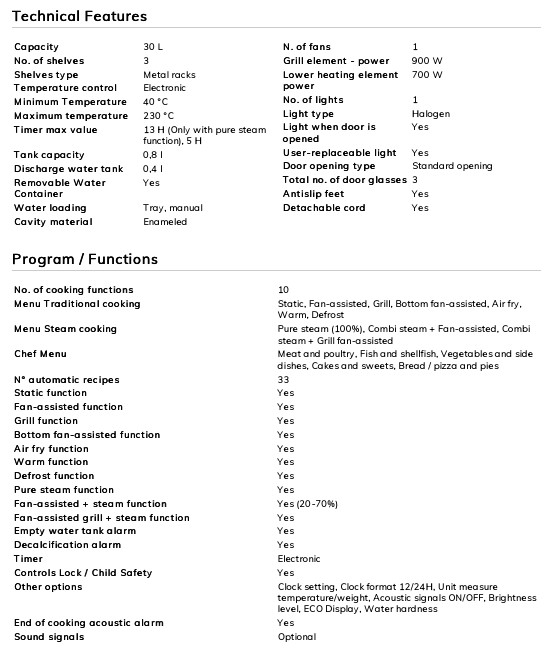 這款小巧而強大的蒸汽焗爐,具有意大利設計和製造的所有特徵,具備10合1的蒸焗多種功能,能夠提供最高的烹飪性能,33個厨師設定自動食譜.