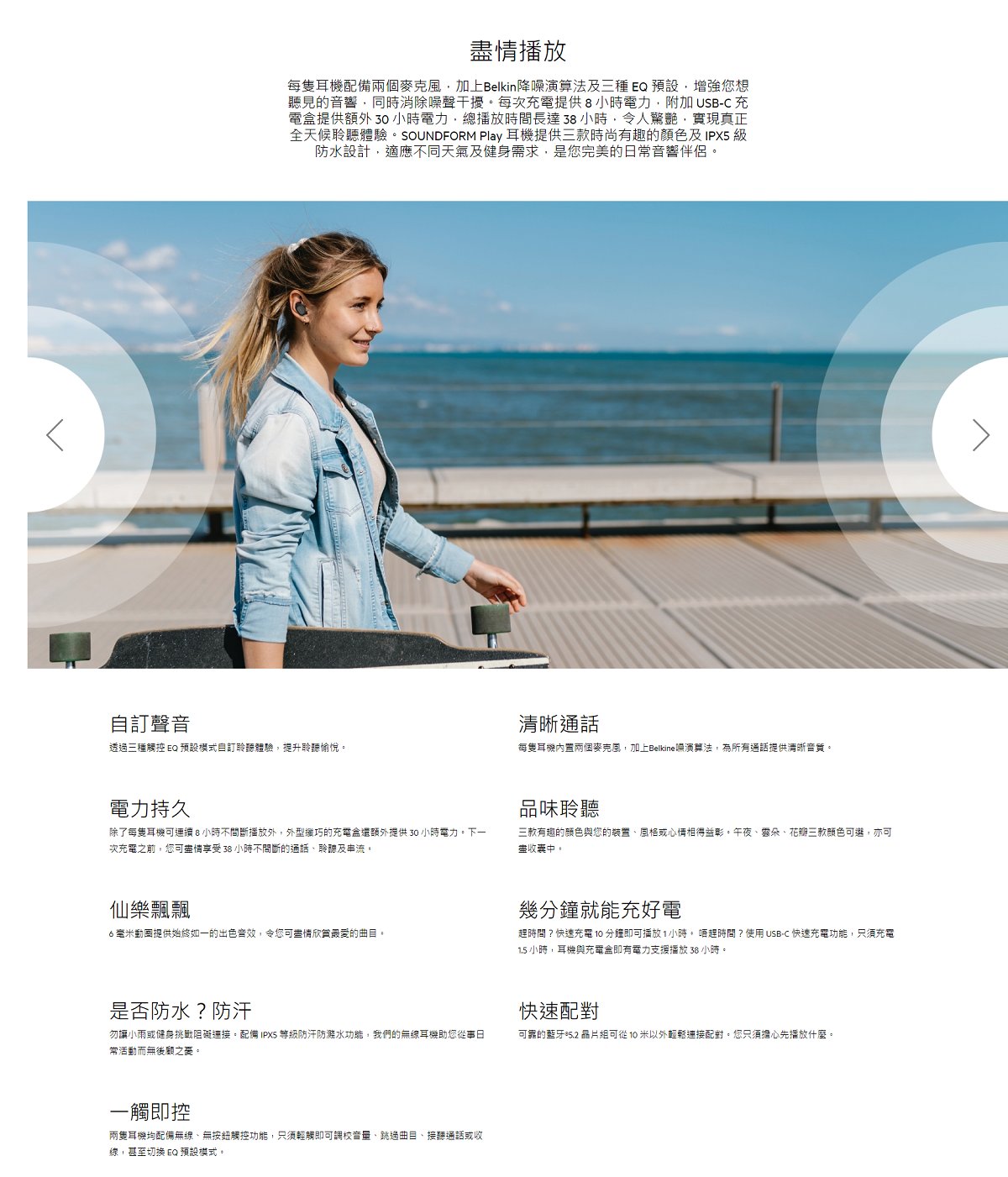 為您的日常聆聽時間增添時尚品味。我們的 SOUNDFORM Play 耳機提供 38 小時優質聆聽體驗,共有3種 EQ 預設及3款時尚顏色可供選擇,貼合您的服飾、裝置或心情。