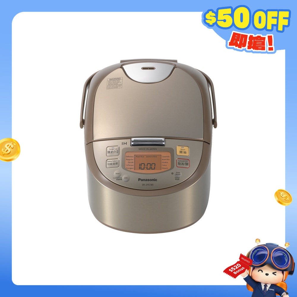 容量:1.8公升(米量:1-10杯)/ 2段IH磁應導熱,使內鍋本身發熱,令米飯平均受熱/ 「黃金陶鑽厚鍋」備有「鑽石高導熱塗層」,產生大量細小對流氣泡,將熱力傳送至每粒米飯