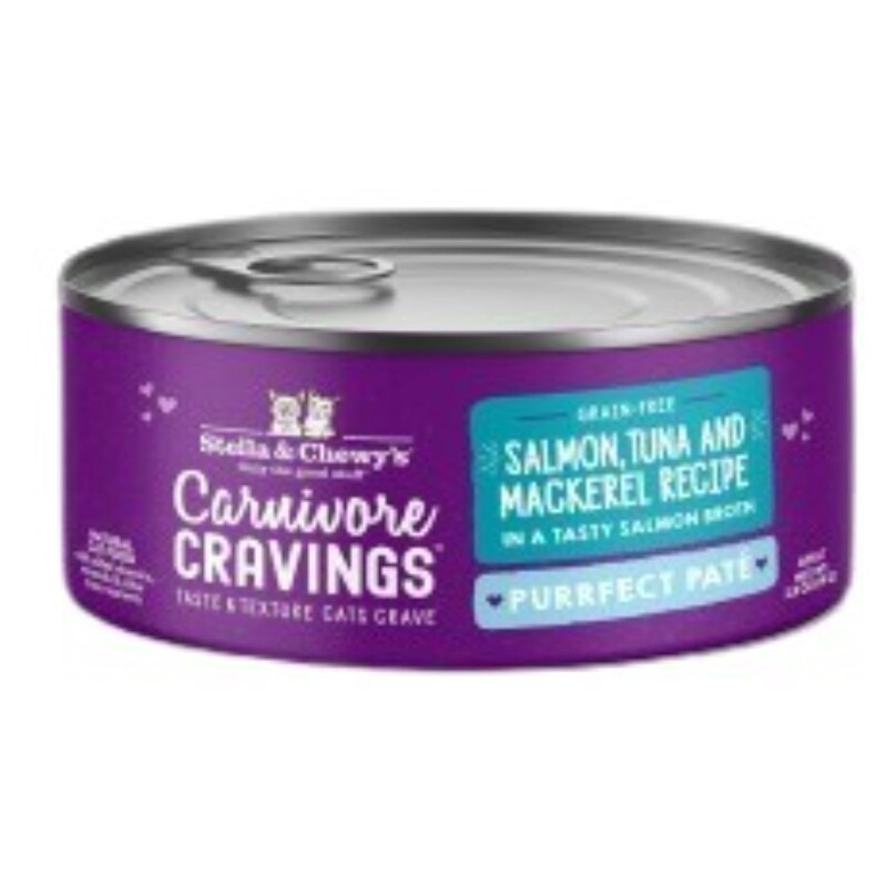 配料: 野生鮭魚、野生鮪魚、鮭魚湯、鮪魚湯、鯖魚、乾蛋、葵花籽油、木薯澱粉、食鹽、蒲公英葉、 氯化鉀、硫酸鈣、牛磺酸、氯化膽鹼、維生素E補充劑、芹菜粉、硝酸硫胺、菸鹼酸補充劑、維生素A補充劑、氧化鋅、還原鐵、 亞硒酸鈉、硫酸錳、鹽酸吡哆醇、 D-泛酸鈣、核黃素補充劑、銅氨基酸複合物、葉酸、維生素B12補充劑、維生素D3補充劑、生物素、碘化鉀 保證成分分析: 粗蛋白質(最低含量)10.0% 粗脂肪(最低含量)3.5% 粗纖維(最高含量)2.0% 水分(最高含量) 80.0% 牛磺酸(最低含量)0.05% 熱量:103 千卡/2.8 盎司罐裝 192 千卡/5.20 盎司罐裝 (代謝能,計算值):1309 千卡/公斤
