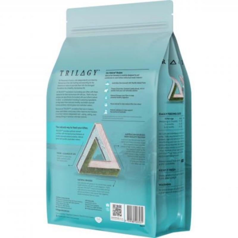 Trilogy™奇境 澳洲尖吻鱸及吞拿魚+5%紐西蘭羊肺凍乾 無穀幼貓糧 (發育成長配方-Kitten) ● 澳洲尖吻鱸—幫助發育 來自澳洲無汙染殘留認證養殖場,滿足成長所需,奠定健康基礎 ● 紐西蘭羊肺—原肉凍乾 模擬貓咪狩獵需攝取5%腺體內臟,真正看得到血管與肉質紋理的原肉製成 ● 天然貓草—補充腸道纖維 效仿野生貓咪食草特性,紫花苜蓿、菊苣根、絲蘭,幫助室內貓排毛 ● 幼貓專用成長配方 完整均衡的營養,幫助幼貓成長發育和肌肉發展 澳洲尖吻鱸特色 1.目前市售唯一使用澳洲尖吻鱸的寵物糧。 2.低脂肪、高蛋白、含多種消化酶,適合控制飲食或發育期的貓。 3.保健心血管、腦部-白肉魚中Omega-3含量最高的魚種。 4.保健骨質-富含多種必須礦物質硒、鋅、鈣、鎂。 5.保護視力-高含量的維生素A提供眼睛視力抗氧化。 6.低重金屬含量,以浮游生物為主食,非食物鏈頂層,更安全的魚肉選擇。 來自Humpty Doo尖吻鱸養殖場的安全保證 不含荷爾蒙、抗生素及生長促進劑。 2014首批獲得澳洲尖吻鱸永續水產養殖計劃認證的養殖場。 2017獲得全球最佳水產養殖規範認證。 擁有GLOBALG.A.P.(全球良好農業規範)及FeedSafe認證,確保環境和社會永續性、食品安全、可追溯性與動物福利,皆符合最高標準的稽核。