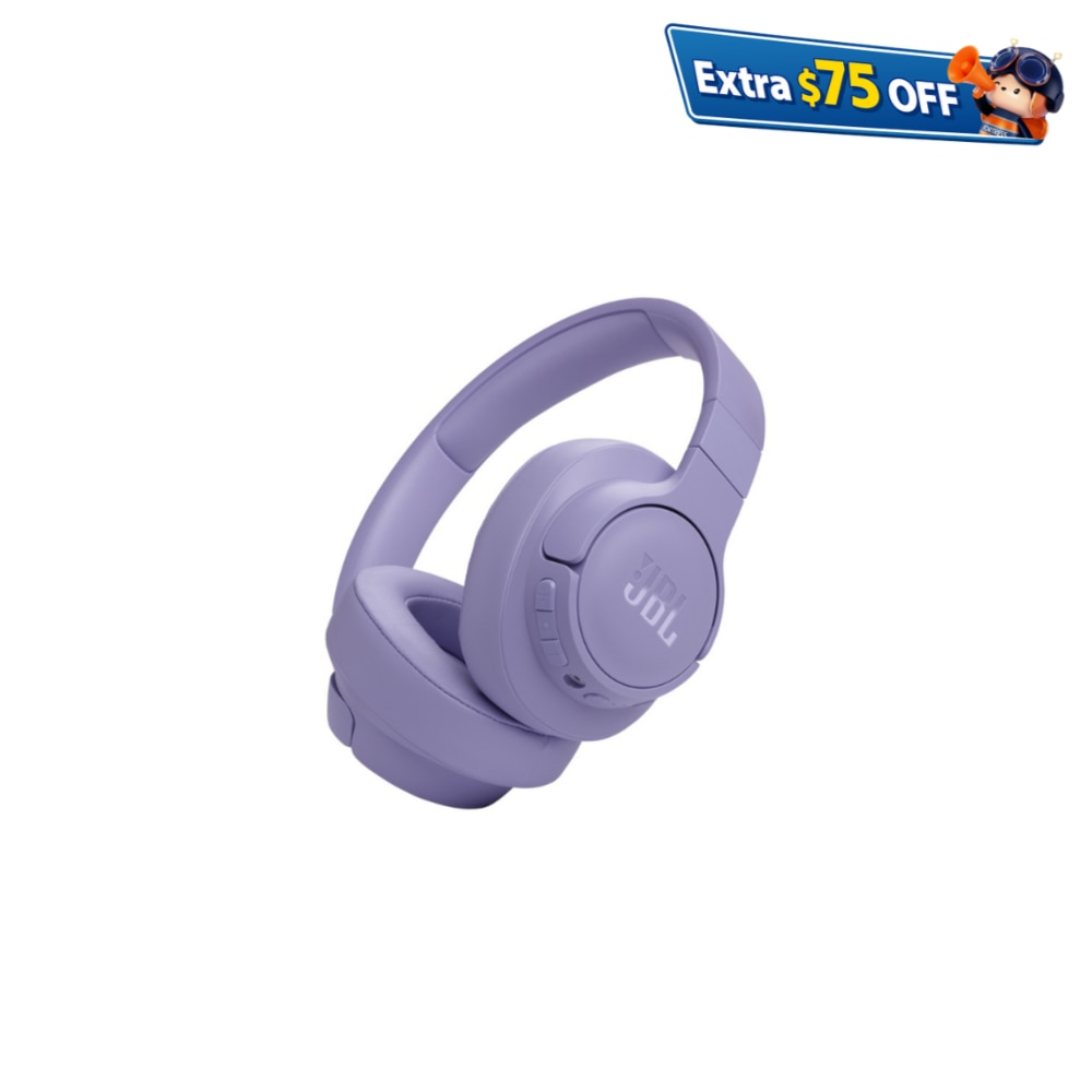 JBL Tune 770NC 適應型降噪無線耳機可提供 JBL Pure Bass 音效和長達 70 小時的電池續航力。輕巧且可平整摺疊。