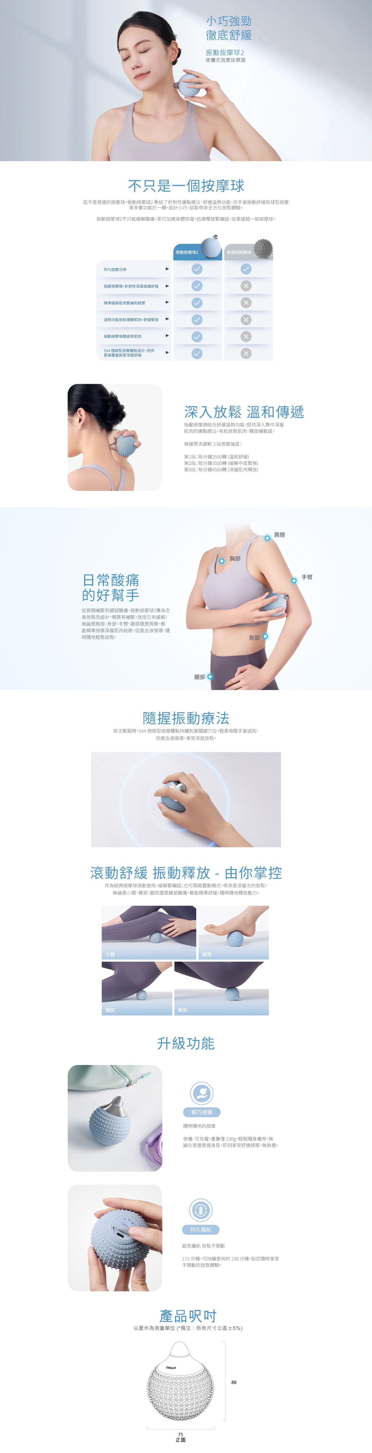 這不是普通的按摩球。振動按摩球2 集結了針對性痛點療法、舒適溫熱功能、仿手掌振動舒緩和球型按摩等多重功能於一體,設計小巧,卻能帶來全方位放鬆體驗。振動按摩球2不只能緩解酸痛,更可加速身體恢復,迅速釋放緊繃感,效果遠超一般按摩球。