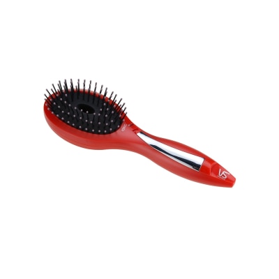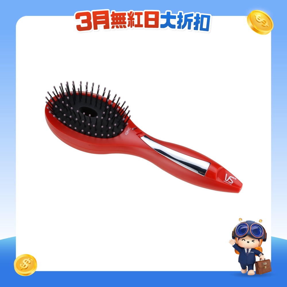 負離子讓秀髮更亮澤.防靜電.保護型梳頭及舒適梳齒氣墊.負離子開關.雙面離子出風口.輕巧手柄23 x 7 x 6厘米.指示燈