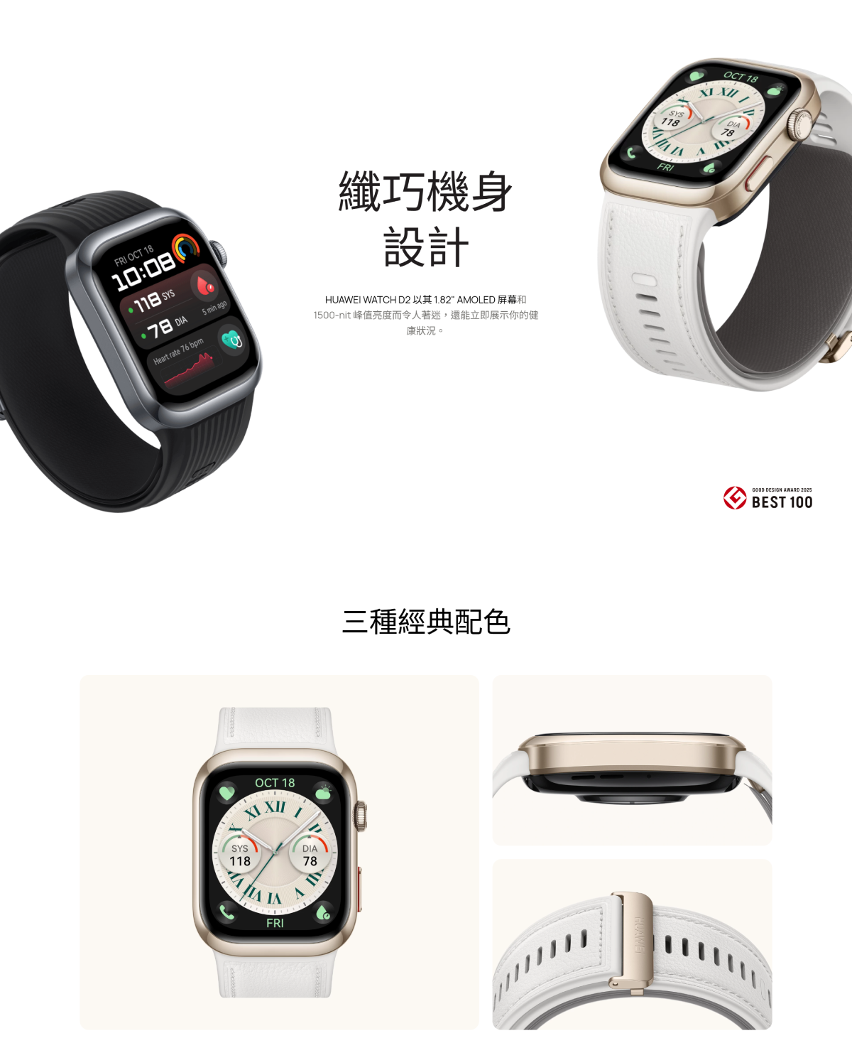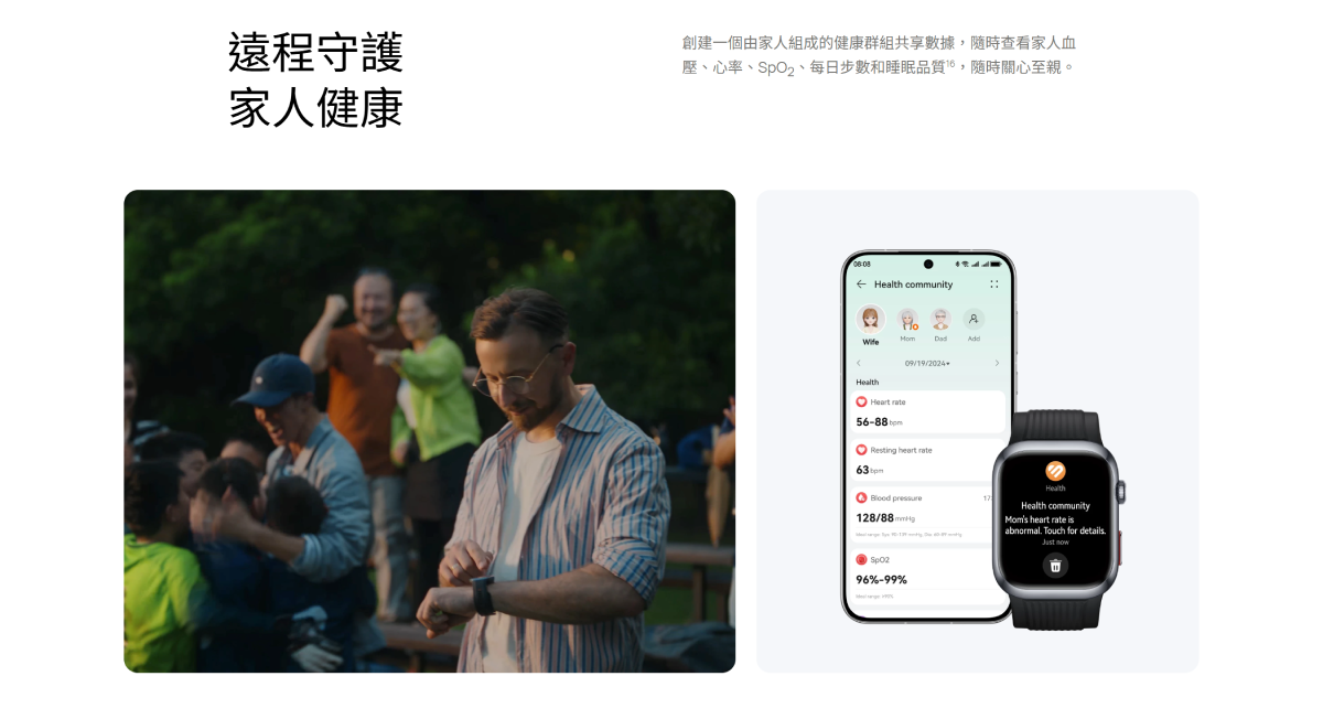 動態血壓監測,1.82” AMOLED屏幕,升級健康檢測功能, 兼容iOS及Android連接.