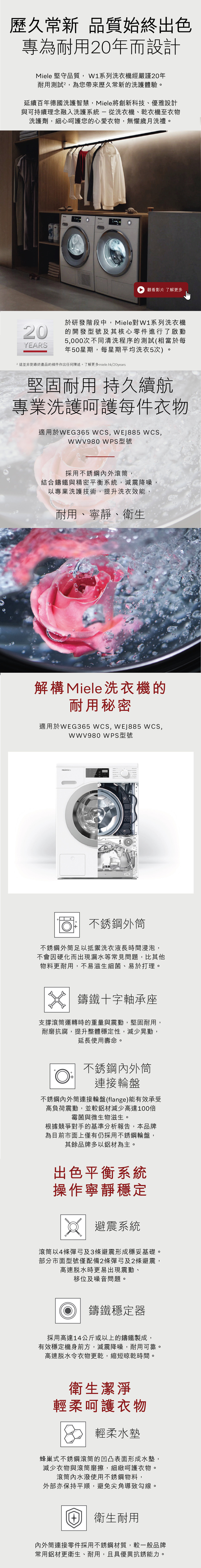 Miele 堅守品質,嚴謹20年耐用測試,產品歷久常新,可靠耐用。承傳百年德國洗護智慧,融合創新科技、優雅設計與可持續理念,全面提升衣物護理體驗。從今日起,每件心愛衣物都光潔如新,無懼歲月洗禮。