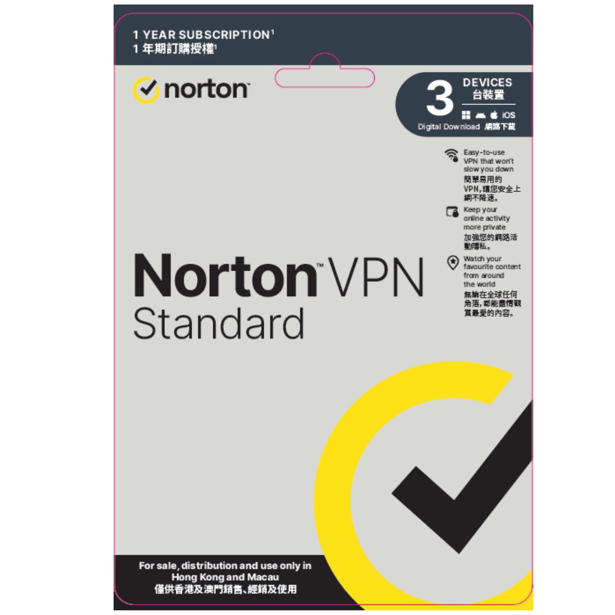 Norton WiFi Privacy Secure VPN - 1年期,1用戶,3台裝置 (實體卡版)